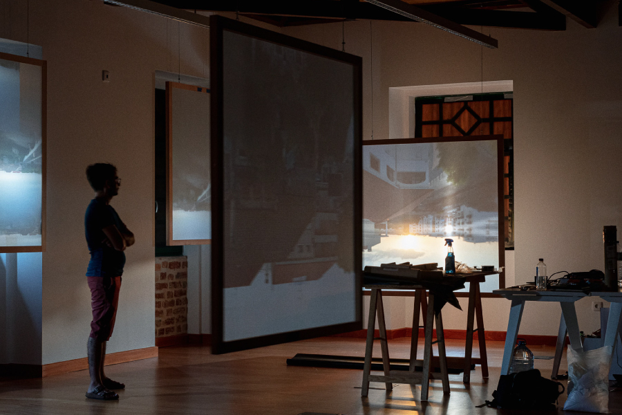 Apresentação na Casa Varela, em Pombal, composta por várias câmaras obscuras, explorando a relação entre o espaço exterior e o interior através da luz natural e de processos fotográficos artesanais.