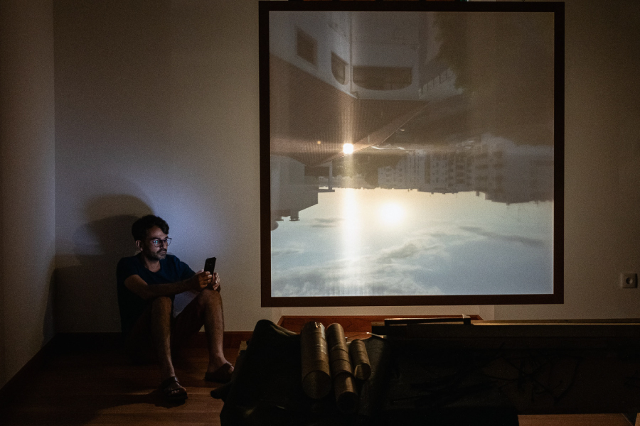 Um presente contínuo, no qual a luz natural, as mudanças climatéricas e o movimento urbano ao longo do dia alteram a visualização das imagens projetadas.