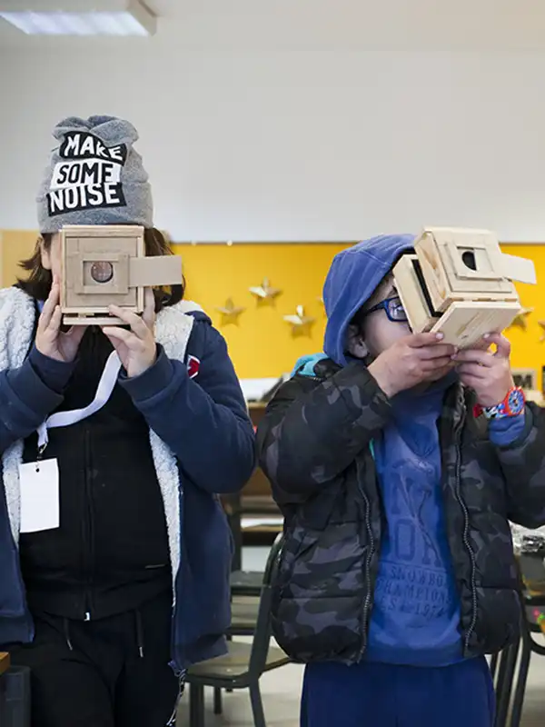 Esta oficina é dedicada à construção manual de uma câmara fotográfica de fole, a partir dos princípios fundamentais da câmara obscura e da câmara óptica.